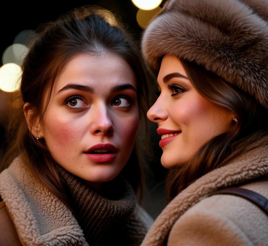 Алла подняла глаза. Их взгляды встретились через толпу. Сначала в глазах Аллы мелькнуло привычное высокомерное недоумение: «Что она тут делает?». Потом этот взгляд скользнул по Даше, по ее лицу, по куртке, и в нем что-то дрогнуло. Она узнала и куртку, и ее. И выражение ее лица начало меняться. Высокомерие растаяло, сменившись на мгновение растерянностью, почти удивлением. Потом в ее взгляде появилось что-то сложное — может быть, догадка, может быть, понимание того, что за этим годом, стоявшим между ними, скрывается целая история, которую она, Алла, не знает, но может угадать по новому, твердому выражению в глазах Даши.