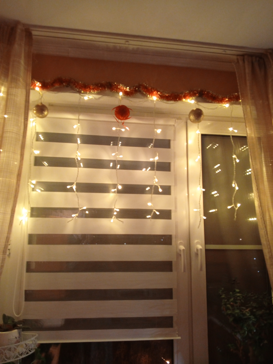 Наконец-то сподвиглась и занялась украшениями к Новому году. В этом году чего-то тяжело раскачивалась. Но процесс пошел. Хотя каждый раз говорю себе, что не буду ничего украшать на общественных территориях, только в квартире. Но не получается. И хорошо что так. От этого и настроение поднимается, лично у меня. В квартире повесила огоньки на два окна, иллюминация мне нравится. Нарядила маленькую елочку, поставила ее на балконный подоконник со стороны улицы. Ну понятно почему так. Потому что молодая активная кошка живо интересуется всем. И во избежании непредвиденного убрала ее (елку) за окно. Развесила немного мишуры и игрушек по квартире. Еще преобразила общий соседский коридор на 4 квартиры. Там тоже стоит елочка и гирлянды висят. Такая традиция, которую сама завела, сама и поддерживаю. Еще у меня есть один объект для украшения - это холл 1 этажа подъезда. Там я украсила окно и поставила елочку. Елочка из того, что было. Должна была стоять большая, но ей "сделали ноги". Она