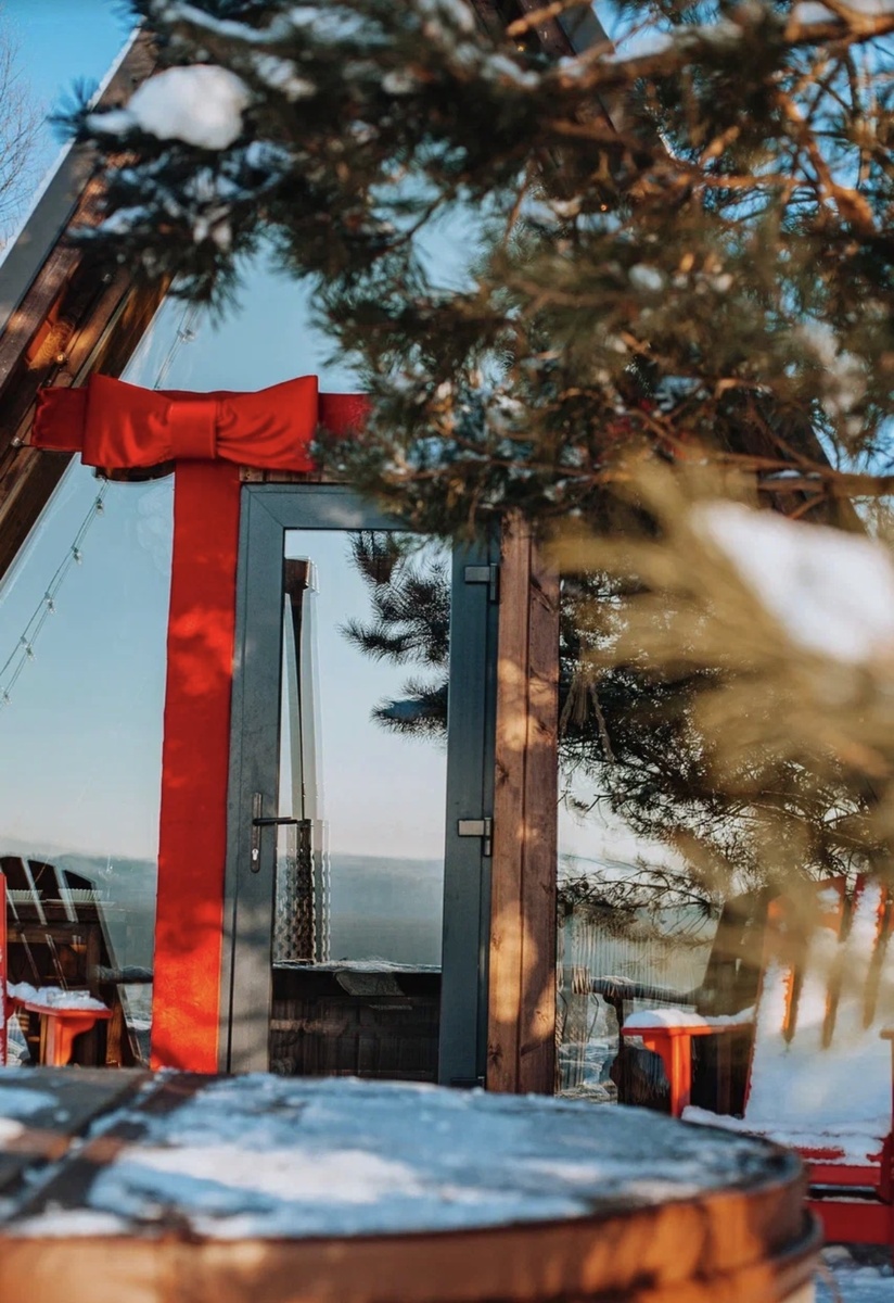 Здесь гостям открывается чудесный вид через панорамное окно на березовую рощу. Эта особенная атмосфера уюта и тепла идеально подходит для свиданий, вечеров с приятными разговорами, чтением книг или просто наблюдением за звездами.