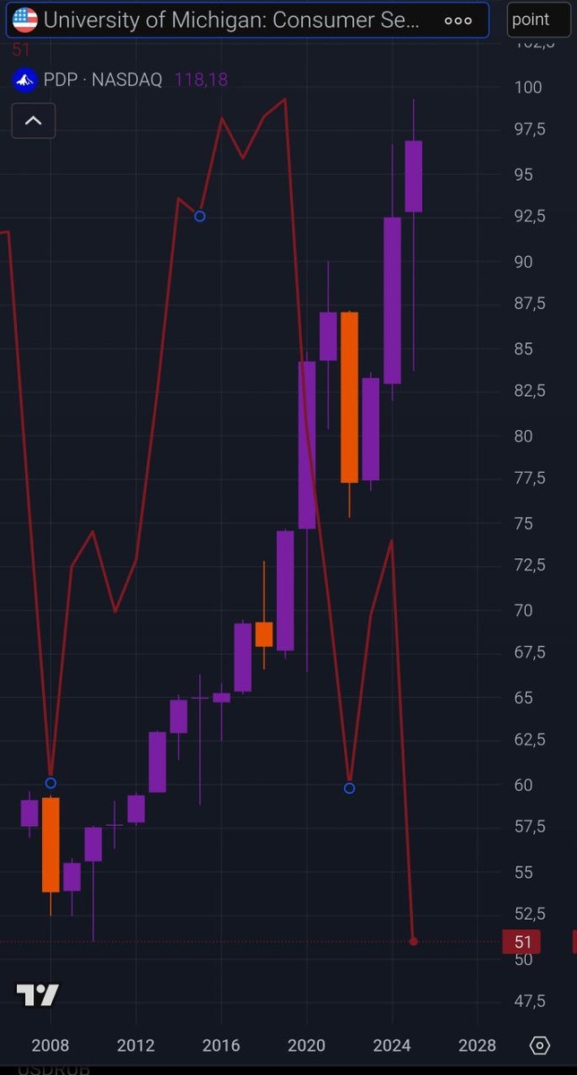 Точнее, стараюсь быть, но реальность такова как она есть Пожалуй вот два лучших графика уходящего года: 1. Настроения потребителей США vs. уже знакомый вам импульсный ETF на техов 2. Аллокация ритейл инвесторов в акции на максимумах за последние два десятилетия [71.2%] Ну и немного контекста В прошедшую "черную пятницу" популярность "Покупай сейчас, плати позже" резко возросла на 9% в целом, особенно активно ее используют молодые потребители: 41% покупателей в возрасте от 16 до 24 лет пользовались BNPL, а молодые миллениалы увеличили свое использование на 87% по сравнению с прошлым годом Домохозяйства с более высоким доходом также пользуются услугами BNPL: 38% из тех, кто зарабатывает более 100 000 долларов, пользуются услугами BNPL Примечательно, что тенденция выходит за рамки дискреционных расходов — 25% пользователей BNPL теперь используют их для покупки продуктов питания https://www.businessinsider.com/buy-now-pay-later-black-friday-risks-credit-score-2025-11 + «Быки слишко