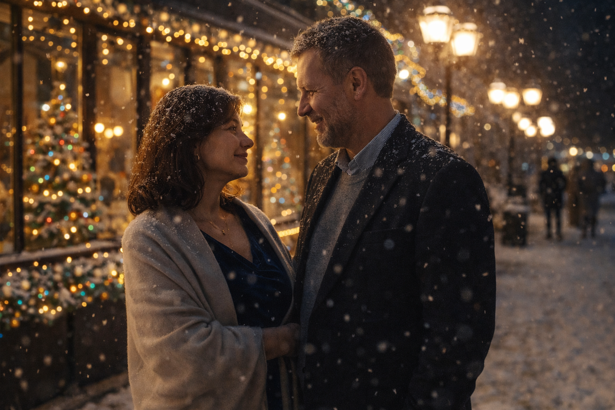 Они стояли у входа в ресторан, снег ложился на их плечи, и Людмила Ивановна вдруг подумала: вот оно, настоящее новогоднее чудо. Не минус восемь килограммов. А плюс один человек, рядом с которым не надо быть «с картинки».