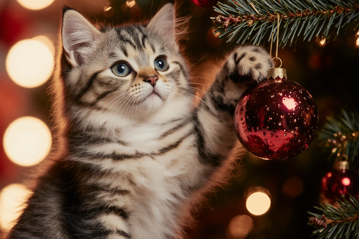 - кошка видит гирлянду — значит, по ней можно забраться повыше или поиграть с болтающимся концом;