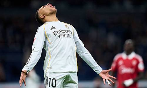 Мадридский «Реал» сыграл с «Севильей» в домашнем матче 17-го тура испанской Ла Лиги, сообщает Sports.kz. Встреча прошла на стадионе «Сантьяго Бернабеу» в Мадриде, обслуживала ее судейская бригада во главе с Алехандро Муньисом Руисом. Хаби Алонсо выставил следующий состав: Куртуа, Aсенсио, Рюдигер, Гарсия, Тчуамени, Хёйсен, Беллингем, Родриго, Гюлер, Мбаппе, Винисиус. На 38-й минуте счет открыли хозяева благодаря Джуду Беллингему. Во второй половине после удаления Маркана (68-я) гости остались в меньшинстве, и фавориты все довели уверенной победы, в их составе с пенальти второй забил Килиан Мбаппе (86-я) — 2:0. Теперь у «Реала» стало 42 очка и он на одно отстает от лидирующей каталонской «Барселоны», у которой игра в запасе. ФК «Севилья»