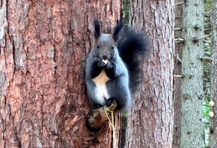 «Томикс» уже публиковал материал об очаровательной белочке, ставшей звездой «зимнего показа мод» в Парке Дружбы города Владимира. Фото: «Подслушано Владимир и Владимирская область» Были в «Томиксе» и запечатлённые в Загородном парке Владимира кадры с рыжей лесной жительницей, сделанные владимирским фотографом Алексеем Вихоревым. Фото Алексея Вихорева В действительности, встретить во владимирских лесах белку не такая уж и редкость. Да и вообще, этот зверёк встречаются практически во всех лесных регионах России. Мало того, белки уже обжили парки в больших городах. И не боятся брать лакомство из рук человека. Фото из архива «Томикса» Фото из архива «Томикса» Но мы здесь, в средней полосе России, привыкли видеть этих зверушек рыжими летом и серовато-рыжими зимой, когда они линяют. И вот недавно читательница «Томикса» Ирина прислала в редакцию видео и фото белки необычного для нас чёрного цвета. Признаемся, коллеги в редакции не только таких не видели живьём, но даже не предполагали, что та