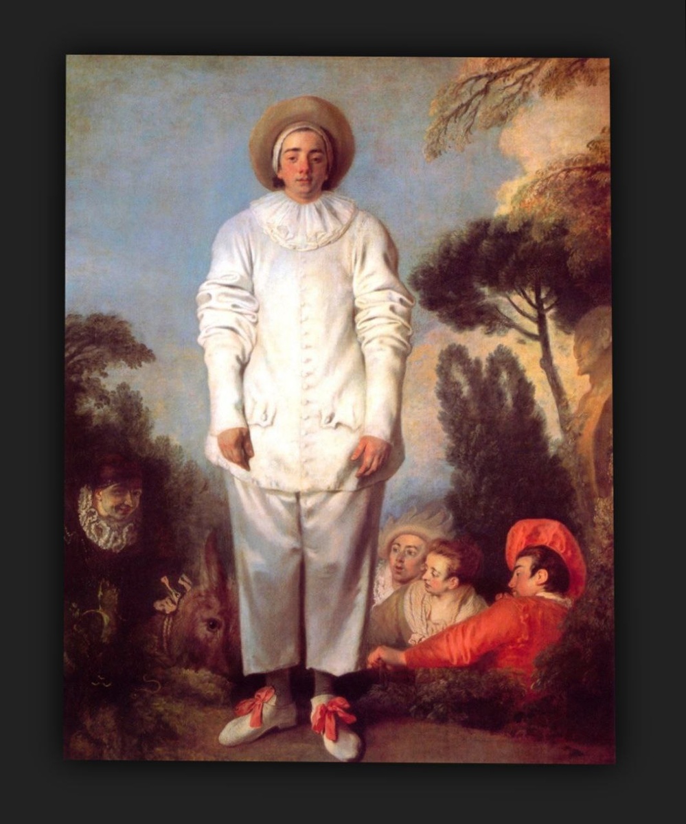 Персонажи комедии дель арте – ветреная Коломбина, коварный Меццетен, печальный Пьеро, которого французы называют Жилем, – не однажды становились героями картин Ватто. Однако Жиль с нашей картины – особенный. Попробуем разобраться, почему. «Жиль» – это история не о персонаже комедии масок, не о самом Пьеро как таковом. Это – история об актёре, «ряженом под Пьеро» и его человеческом одиночестве вне сцены. Актёры на втором плане веселы, они улыбаются и балагурят. Жиль – одинок. Его печальное растерянное лицо как бы говорит: я не знаю, кто я вне этого костюма, вне сцены. И, видимо, оттого так безвольно опущены его руки. «Художника может обидеть каждый», как известно. Жиль и осёл у него под ногами – они так беззащитны, и поэтому так взывают к нашему сочувствию. #яркиеличности #символывискусстве #ТСБ #челлендж