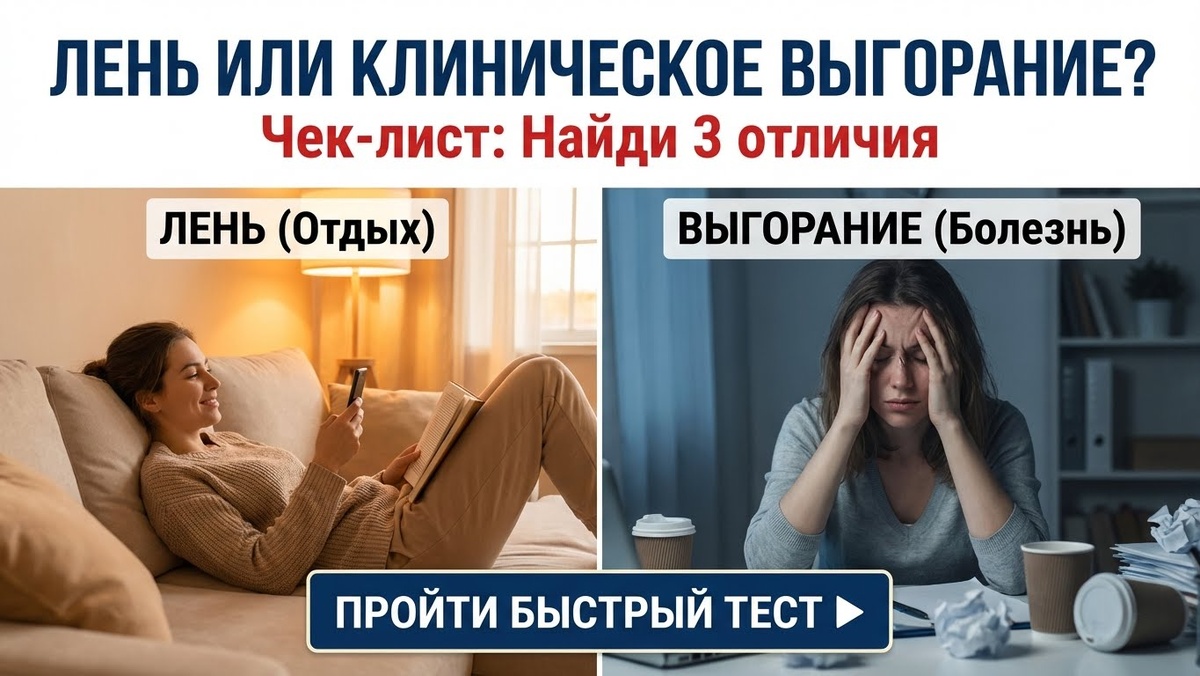 Мы привыкли называть любое нежелание работать ленью. Но часто за «ленью» маскируется опасное состояние — эмоциональное выгорание. Лень — это черта характера или временное желание сэкономить энергию. Выгорание — это диагноз (включен в МКБ-11), биохимический сбой, когда ваша внутренняя батарейка не просто села, а окислилась и потекла. Ругать себя при выгорании — это как бить загнанную лошадь. Бесполезно и жестоко.