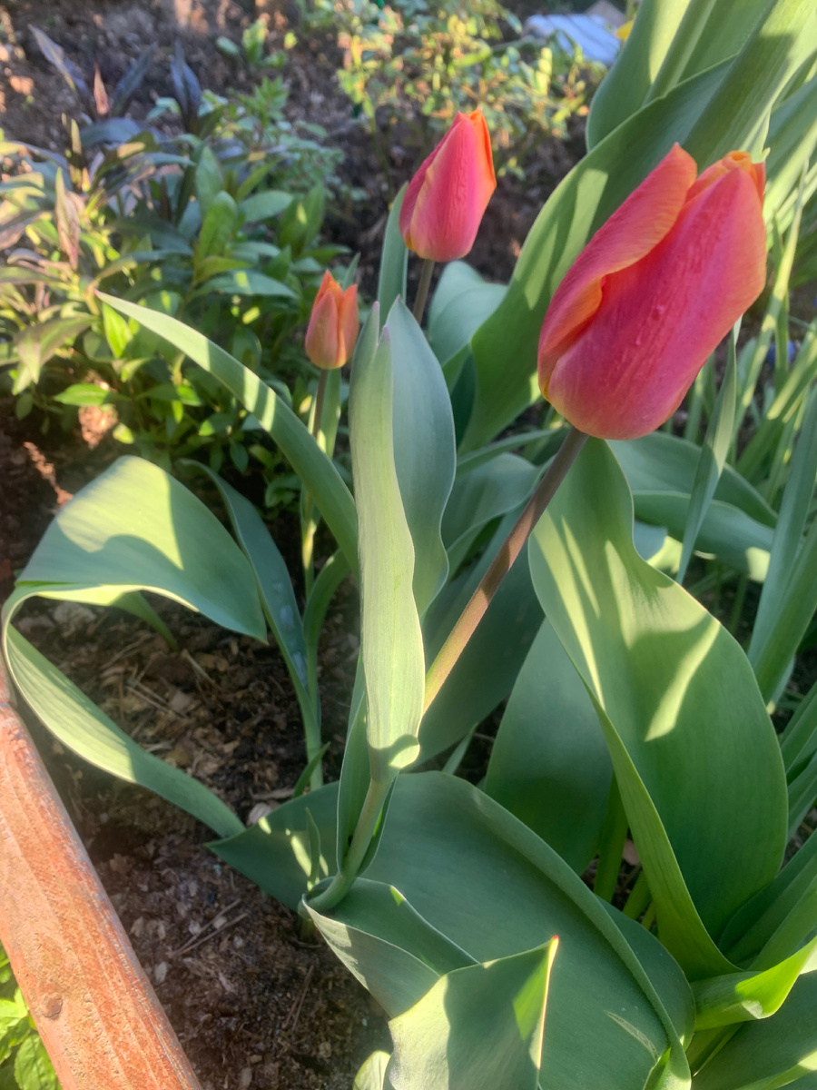 - В начале росли старые обычные красные тюльпаны, их было много, наверное лет 20 ничего не выкапывали, даже в траве местами. Каждый год покупали потом другие.