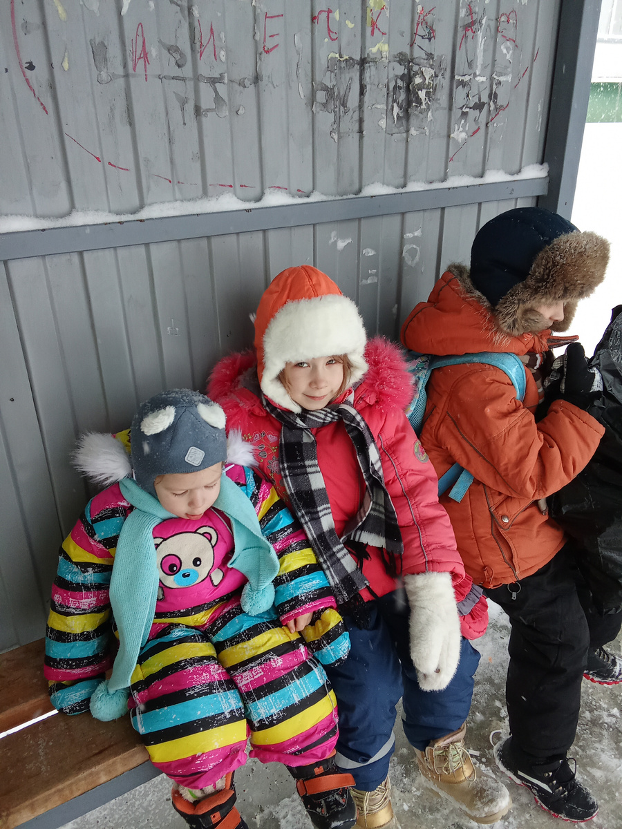 Обратно вернулись на маршрутке. От остановки до дома пробирались ползком. Юлиану тащили волоком. Снега нападало. Юлиане по пояс, но на руках она передвигаться не хотела, а пешком не могла. Забежали домой, взяли санки и посылку. Ехали как первопроходцы на санях. Я взмокла. Много снега, который, конечно, никто не чистит. Возле дороги бугры, на которые не заехать. В одном месте застряли, не могли залезть на гору перед имевшимся когда-то тротуаром с проезжей части. Пришли на почту. Пока я отправляла посылку, дети подрались. Оператор на почте вручила конфеты детям из солидарности ко мне, у неё тоже трое 😁