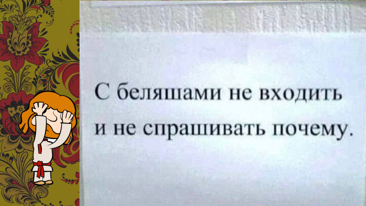 20-е декабря. Санкт-Петербург. Где снег? Так хочется в валенках потоптать тропинки экотроп Ленинградской области. Есть вероятность, что не получится. Ну дела. Кстати, о делах. Поздравляем Полину Лурье с решением Верховного Суда. Если бы они на трансляции заседания продали рекламную интеграцию, то точно бы отбили стоимость квартиры Долиной. Так, ну и вернемся к нашему выпуску. Сегодня у нас 10 веселых фотографий, которые показывают многогранность нашей широкой души. Поехали! Я вам так скажу: нам недостаточно первого предупреждения. На фото вы видите объявление о том, что нельзя заходить с беляшами. И нельзя спрашивать почему. Давайте честно, какая первая мысль у вас возникла бы? Зайти с беляшом и спросить. И только после этого понять смысл запрета. Хотя сам ломаю голову — а куда это с беляшами то нельзя заходить? Что за беляшкриминация. Пишите свои варианты в комментариях. Я вам так скажу. Мы умеем внезапно проявлять запредельную честность. Вспомните, как соседка по купе или плацкарту д