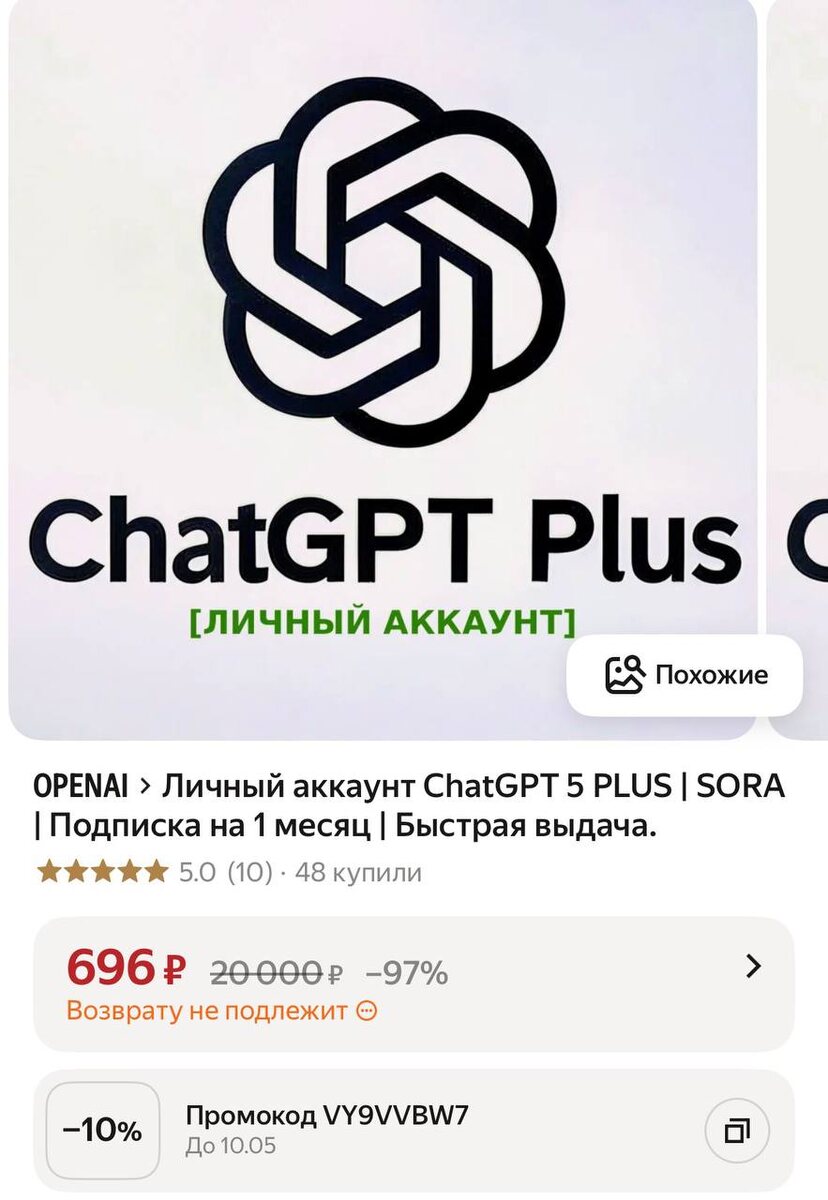 😃 Что-то интересное нашла Личный аккаунт ChatGPT 5 PLUS | SORA | Подписка на 1 месяц | Быстрая выдача. https://market.yandex.ru/cc/8Jx5C5 10% скидка по промо VY9VVBW7 Не знаю как вы, но я пользуюсь нейросетями ежедневно. А вы используете нейросети? 🔥 - Да ❤️ - Нет. И без низ хорошо 👌 - Иногда 🛍DEC122-AF — скидка 100 ₽ на один любой заказ от 5000 ₽ ✅ Канал по скидкам 🔣 Бот с промокодами