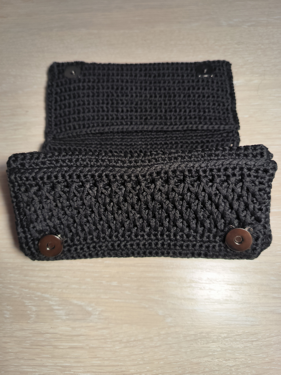 Боковые детали вязались отдельно по размеру кошелька .