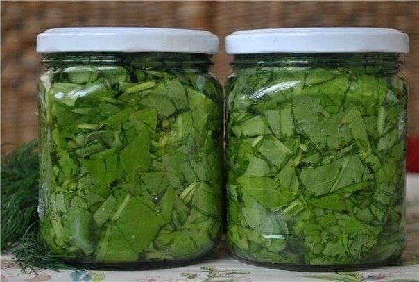 Свежие листья щавеля хорошо вымыть, пробланшировать 1-2 минуты, плотно уложить в стерильные банки (0,5 л) и залить горячей водой, в которой бланшировался щавель. Наполненные банки накрыть крышками, стерилизовать 1 час, герметически укупорить и охладить.
