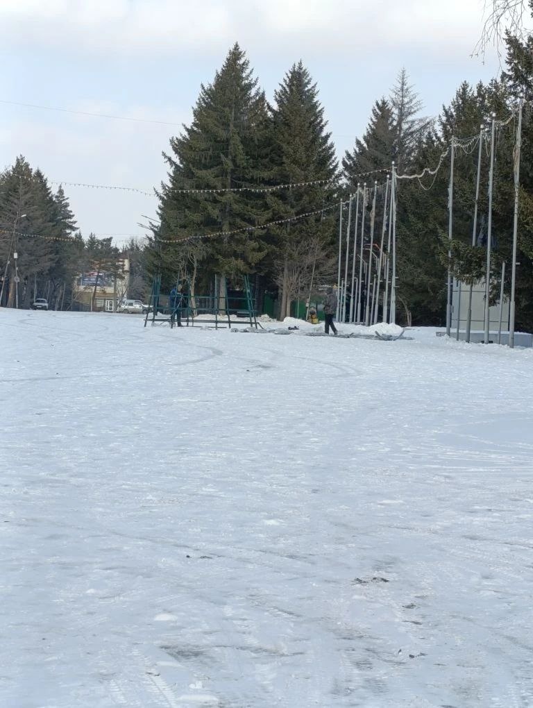 В пгт. Кировский на площади начали собирать искусственную ёлку, делится подписчик