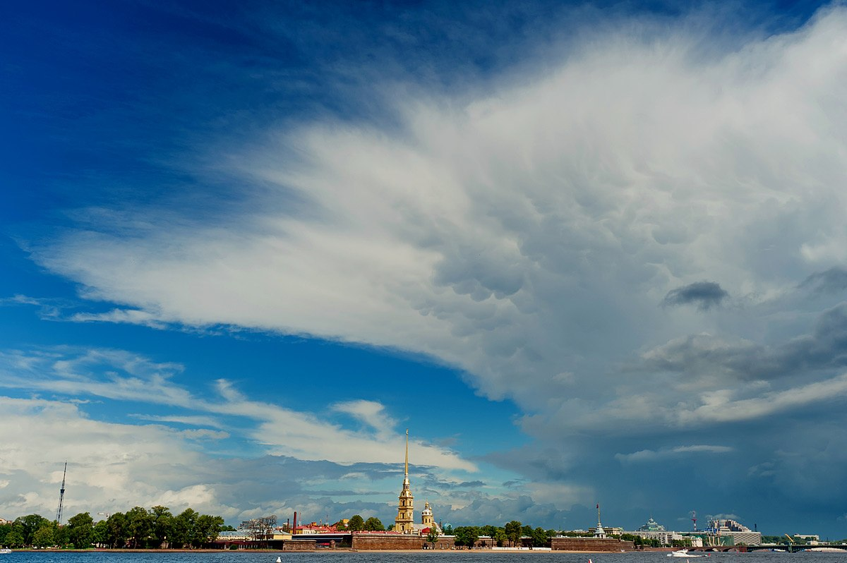 Небо над Санкт-Петербургом часто закрыто дождевой серой хмарью. И когда такой завесы нет, оно вовсю старается восполнить своё упущение сногсшибательной красотой.