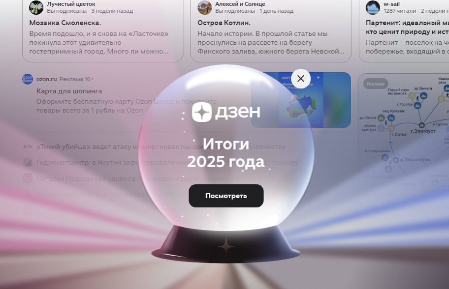Итоги года подводят всё больше площадок. В этом году Дзен приятно удивил и тоже подвёл свои итоги 2025. Все уже посмотрели свои итоги? Смотрю и я!:)