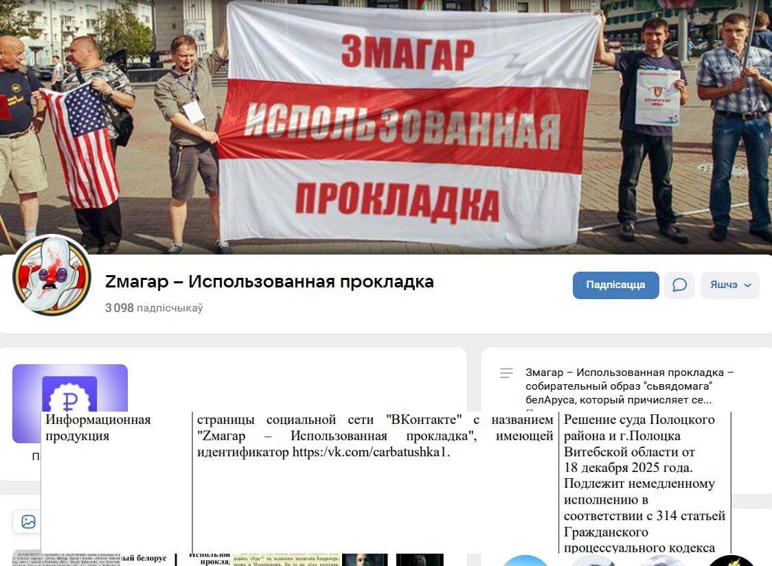Паблик «Zмагар – Использованная прокладка» был признан экстремистским и запрещен в Беларуси