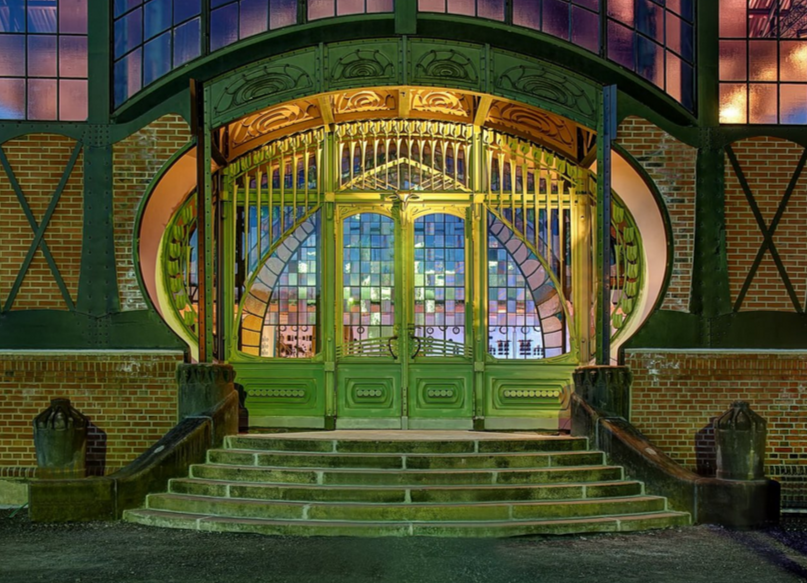 Посмотрите, какая потрясающая фотография! Пусть это будут пафосные прилагательные, но это удивительная, красивая, волшебная дверь в стиле модерн. Точнее, даже югендстиль, как сказали бы специалисты, потому что это – дверь в стиле немецкого модерна. А что это за здание с такой красивой дверью? А это машинный зал угольной шахты Цоллерн, находящийся в Германии в Дортмунде. Эту шахту строили с 1898 по 1904 годы по проекту архитектора Пауля Кноббе. Главный вход (вот эта самая дверь) проектировалась архитектором Бруно Мёрингом. Кроме машинного зала на территории шахты располагались административные здания, кузница, столярная мастерская, медпункт, баня, склад, пожарная часть. Шахта проработала до середины пятидесятых годов XX века, а в 1969 году была признана памятником архитектуры. В 1981 году здесь разместился Вестфальский промышленный музей. Соответственно, всю красоту спасли от сноса, удивительный мир технического модерна начала XX века остается с нами. Посмотрите, насколько красивым мож