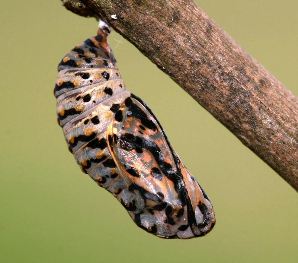 Всегда думал, что метаморфоза внутри куколки заключается в плавном превращении гусеницы в бабочку, но вообще нет. Благодаря различным гормонам и ферментам (Экдизон, ювенильный гормон, 20-гидроксиэкдизон и всякие пищеварительные ферменты) тело гусеницы начинает переварить саму себя, плавно превращая почти все ткани тела в биологический суп. Гусеница исчезает, можно сказать. После этого суп как строительный материал склеивается в совершенно новый организм. Это поражает. При всем при этом самое удивительное, что рассыпавшиеся ткани все еще содержат биологическую "память" гусеницы и спокойно передаются бабочке. Это связано как раз с тем, что разрушаются в куколке не все ткани. Часть нервной системы и ключевые клетки мозга сохраняются для нового организма.