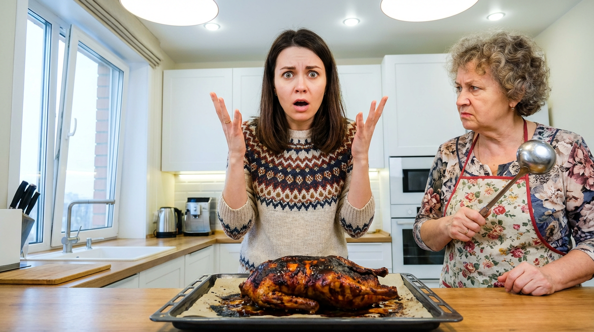 – Посмотри! – Ирина ткнула пальцем в противень. – Твоя мама решила «спасти» утку огуречным рассолом! Она смыла весь соус! Леша, это есть невозможно! Это помои!