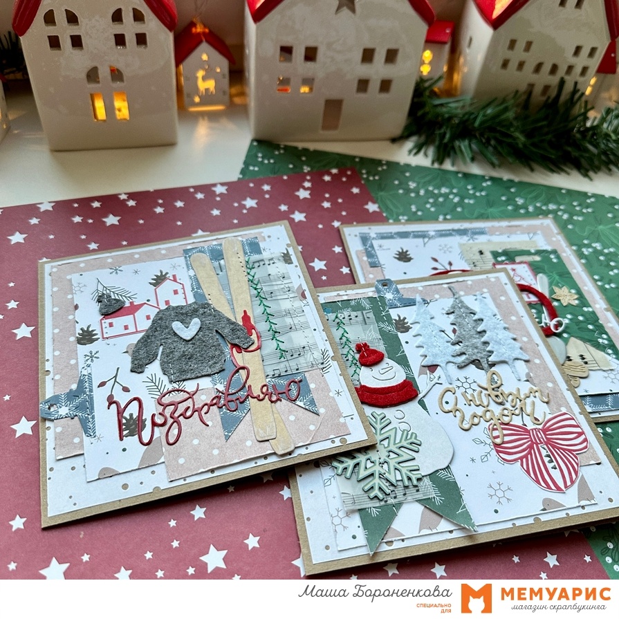 Утилизируем обрезки. Открытки к Новому году от Маши Бороненковой