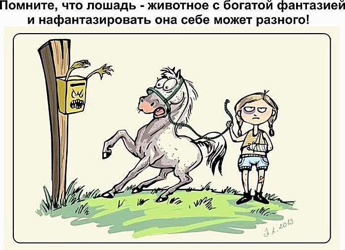 Когда картинка - просто сама по себе ходячий анекдот. Символ наступающего постепенно Нового года - лошадь. Поэтому мне захотелось сделать материал из шуток про этих животных. Как оказалось, кони довольно часто становятся субъектами мира юмора. В анекдотах, карикатурах, приколах. Давайте глянем несколько подобных работ. Не знаю, заставят ли они поржать от смеха, но улыбку точно вызовут. Начнём с того, что лошади - очень своенравные домашние животные (ещё дорогие и хлопотные в смысле содержания). В основном, лошадей держат в конюшнях за городом. Иногда сдают в аренду, чтобы катали ребятишек. У нас в Томске, например, практически каждые зимние праздники "живая реклама" сначала продифилирует по улочкам, оставляя дерь... кхм, весьма внушительные следы на узких улочках. Затем можно во Дворце культуры заплатить за несколько минут и прокатиться в карете, запряжённой лошадкой или покататься на пони. Также, при упоминании "коней" точно приходят на ум скачки, азарт и ставки. Впрочем, датские кар