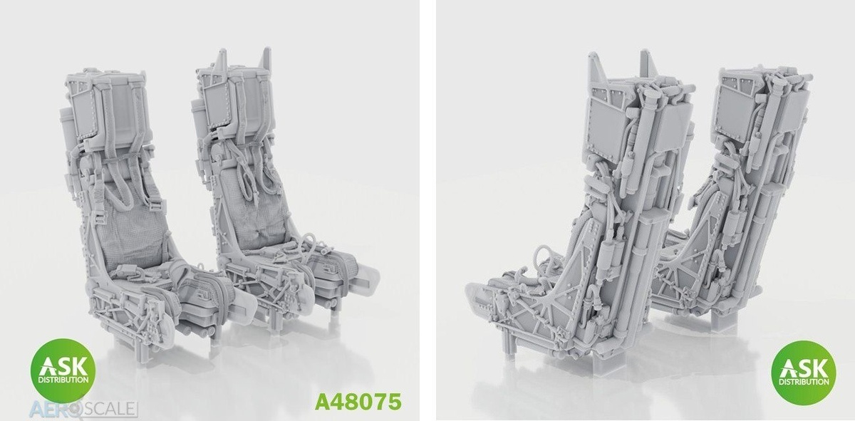 Art Scale Kit (ASK) из Чехии выпустила на 3D-принтере катапультные кресла пилотов SJU-17 с привязными ремнями и без них (по 2 кресла в