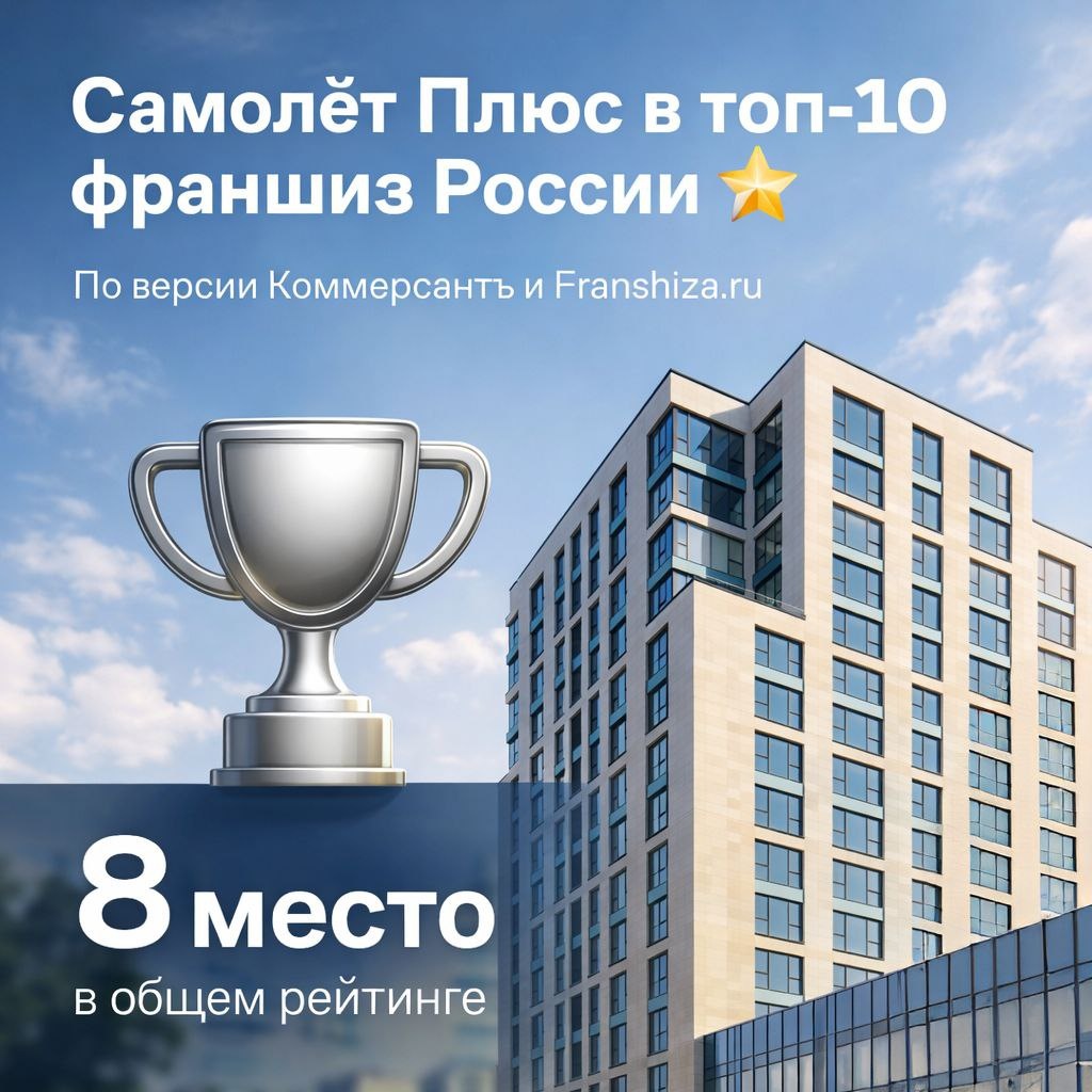 🏆«Самолёт Плюс» вошёл в топ-10 лучших франшиз России и занял 8 место в общем рейтинге