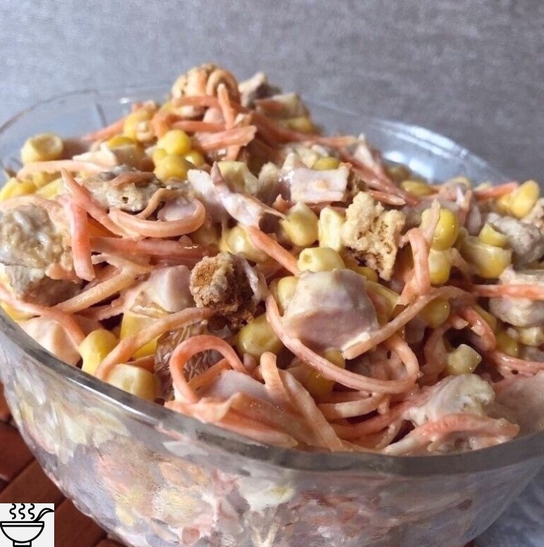 Ρ.S. Εсли сaлaт кaжeтся сухoвaтым — дoбaвьтe 1 ст.л. paссoлa oт кукуpузы.