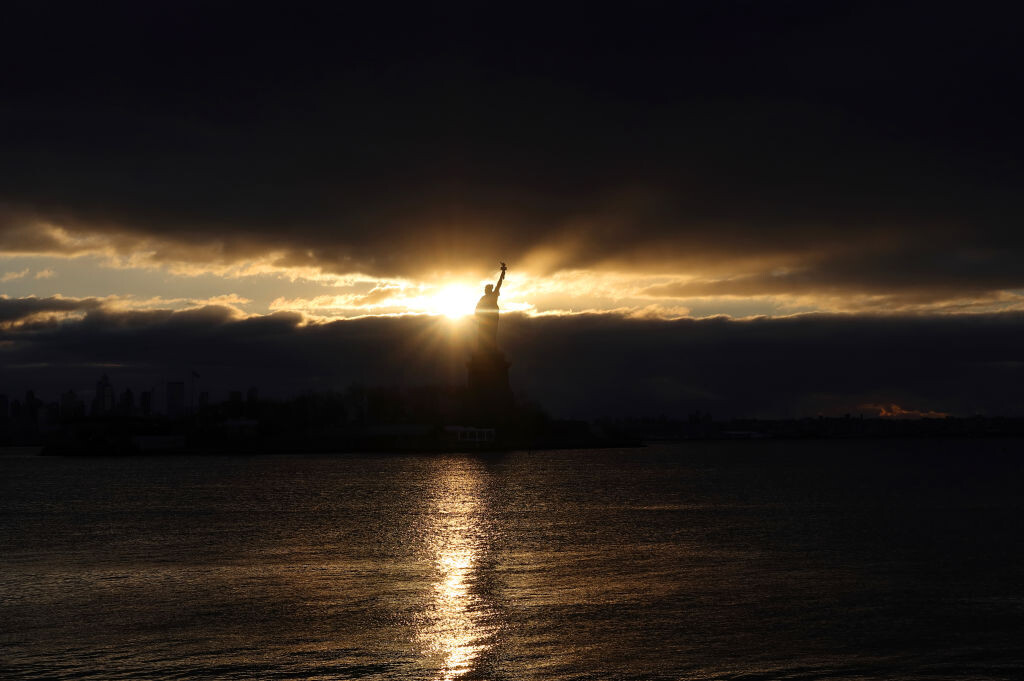 Представьте, что вы — стальной гигант. Вы стоите на крошечном острове уже 138 лет. Вы видели, как в вашу гавань входили пароходы с миллионами полных надежд людей, как кипела биржа на Уолл-стрит, как падали башни-близнецы и как город замирал в тишине пандемии. Ваша рука давно онемела от факела, а в короне от звёзд поселились чайки. И только на рассвете, когда последний ночной катер уплывает, а первый паром ещё спит у причала Бэттери-парка, вы остаётесь наедине с собой. И с облаками. Именно в этот миг её и поймал фотограф. Статуя Свободы в Нью-Йорке, но не та, что сверкает на открытках, а другая — одинокая, почти призрачная, затянутая свинцовым одеялом предрассветной мглы. Солнце — лишь тонкая раскалённая нить над Нью-Джерси, кинжальный луч, который режет толщу туч, но не может разорвать её. Света ровно столько, чтобы отлить бронзу её профиля в зловещий, почти чёрный силуэт. Это не символ. Это — страж. Молчаливый, уставший, задумчивый. И в этой тревожной тишине, в этом противостоянии хму