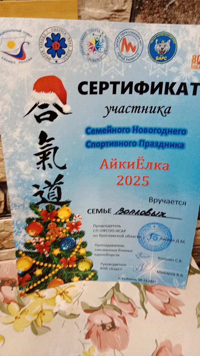 Вчера случилось волшебство. Не то, что показывают в фильмах, а настоящее, живое, которое можно потрогать руками. Наш семейный новогодний вечер прошёл не за столом, а на татами. И закончился он не просто усталостью, а вот этим — тёплым, только что отпечатанным сертификатом участника «АйкиЁлки 2025».