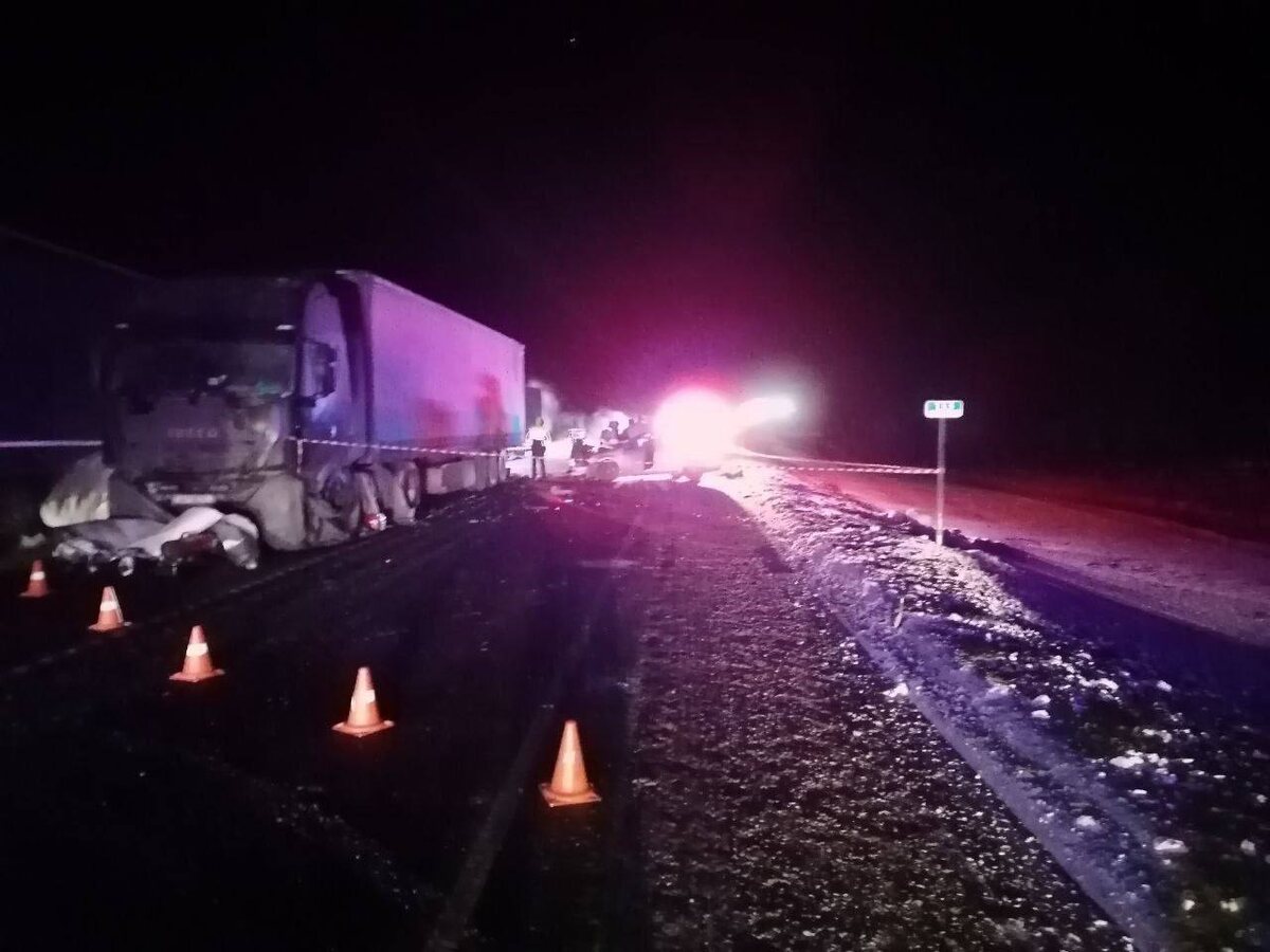 Сотрудники Госавтоинспекции устанавливают обстоятельства дорожно-транспортного происшествия. Оно произошло на трассе Челябинск — Троицк. В автомобиле, который врезался в стоящий грузовик, находились молодые люди. Есть жертвы.