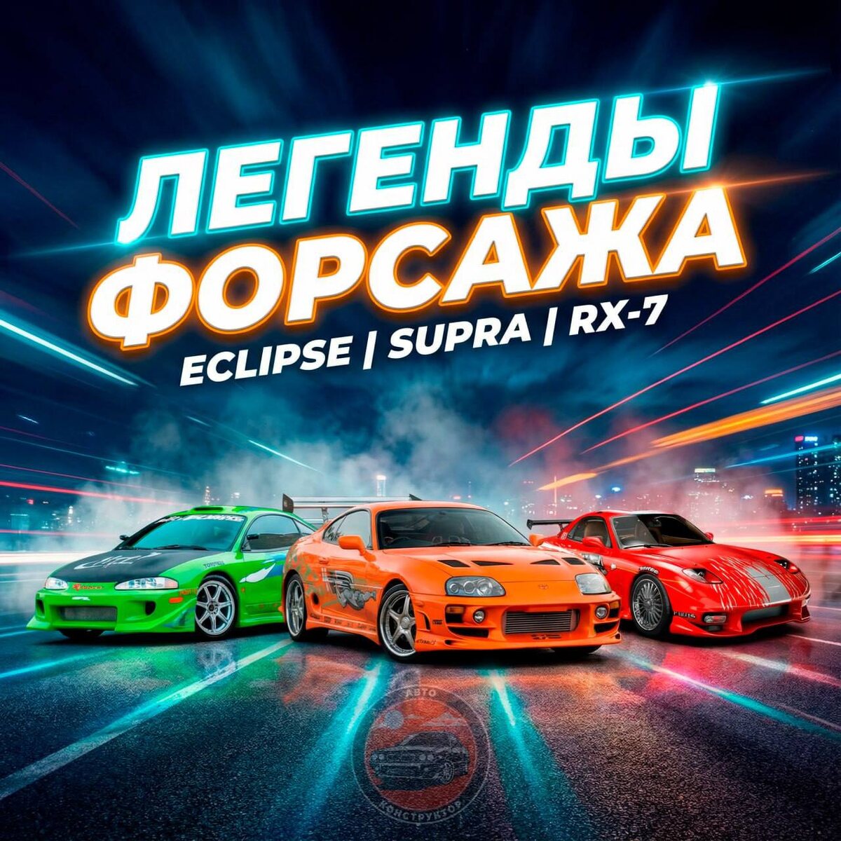 «Форсаж» — как раз из таких. Кто-то после него полюбил скорость. Кто-то — тюнинг. А кто-то до сих пор считает, что настоящая машина может быть без камер, экранов и электронных помощников — зато с характером. Давайте вспомним несколько автомобилей, которые стали иконами благодаря «Форсажу». А в конце расскажем, что с ними можно сделать сегодня, в реальности, а не в кино. 🚘Mitsubishi Eclipse 1995 года. Тот самый тюнингованный Eclipse из первой части фильма. Первая гонка, первый заезд, первый автомобиль Брайана. Оснащён 16-клапанным двухкамерным 2-литровым 4-цилиндровым двигателем 420a мощностью 165 л.с. без турбонаддува. Скромные цифры, но именно этот автомобиль стал для многих входной точкой в мир тюнинга и уличной культуры. 🚘Toyota Supra Mk4 1994 года. Автомобиль, который не нуждается в представлении. Supra MK IV сыграла ключевую роль в фильме — именно её Брайан отдал Доминику в качестве компенсации за разбитую машину. 3,0-литровый рядный шестицилиндровый двигатель 2JZ-GTE с двумя