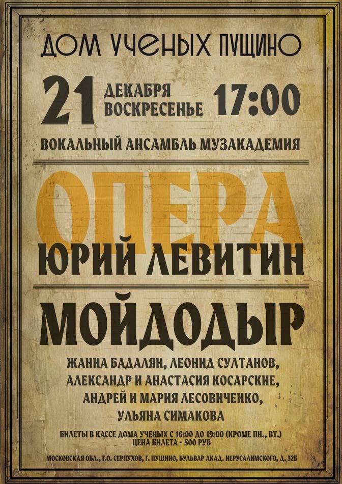 ✨ Опера по сказке «Мойдодыр» 💫У меломанов нашего города появилась возможность побывать на уникальном спектакле, на котором будет весело и интересно всем — и взрослым и детям! 📆 21.12.2025 🕒 17:00 🏢 Дом учёных Пущино 📍 г.о. Серпухов, г. Пущино, бул. Академика Иерусалимского, 32Б 💰 Цена: 500 ₽ ⭐Поддержать канал голосом 💰 Канал Вакансии Серпухова ✅ Мероприятия Серпухов https://dzen.ru/id/66f01c6eb4c6fe60c9ca1608 http://vk.com/serpukhov_events http://dzen.ru/serpukhov_events