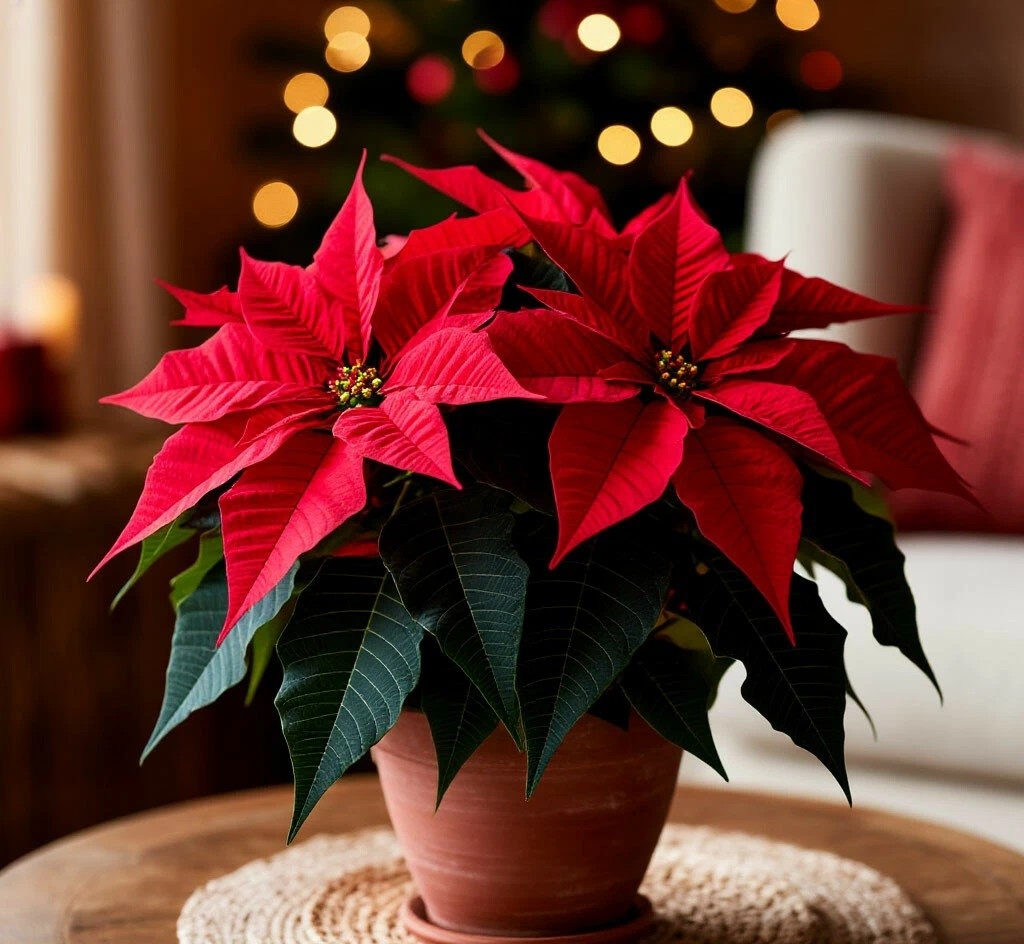 - Доступность. Производители специально выращивают пуансеттии к зимним праздникам, обеспечивая массовый выпуск к ноябрю–декабрю.