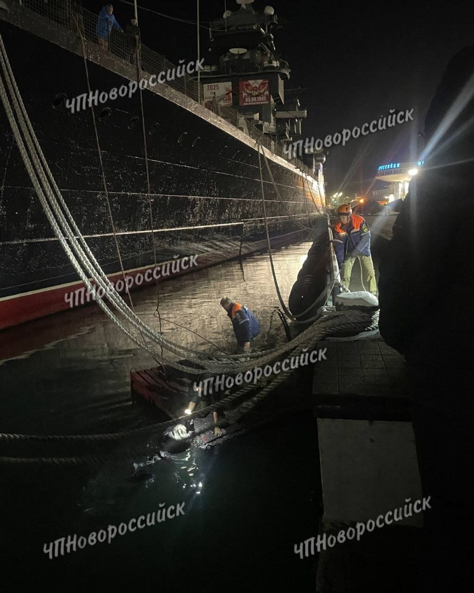 😱Вчера женщина упала в воду возле носа "Кутузова", там зацепилась за швартовые канаты, лежала и звала на помощь