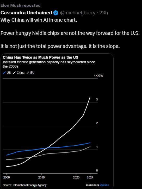 Musk posts 'slope why China will win AI in 1 chart'