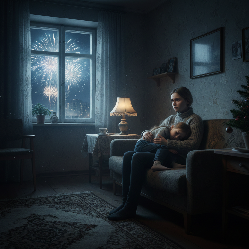 Они взрывались слишком ярко, слишком радостно, будто нарочно. Красные, золотые, синие вспышки отражались в стекле, и на мгновение казалось, что мир там — за окном — счастлив, а здесь, в этой комнате, осталась только тишина.