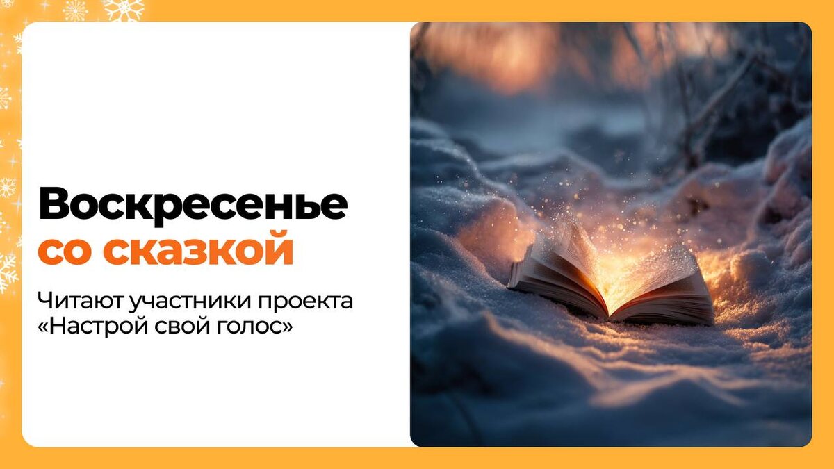 шепотом рассказывают свои истории каждому, кто готов их услышать. Пусть это «Творческое воскресенье со сказкой» станет особенным, наполненным волшебством и чудесами. Устраивайтесь поудобнее, приглушите свет и приготовьтесь услышать сказки от участников проекта «Настрой свой голос». И пусть они перенесут вас в далекое прошлое, где добро побеждает зло, а мечты сбываются.