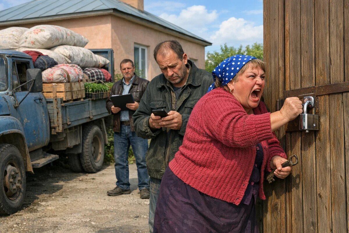 Зинаида долбила кулаком в калитку, пока соседская собака не начала лаять на весь переулок. Виктор стоял рядом с грузовиком, набитым коробками, мешками и ящиками с рассадой, и тупо смотрел на замок. Новый. Хромированный. Совсем не тот ржавый, который открывался ногой.