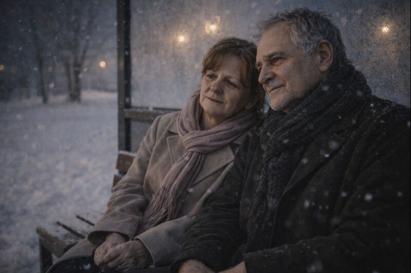 стенами и чужими диагнозами. — Возраст, — сказал врач, не глядя. — Ничего нового. А ей хотелось спросить: а что нового может быть, когда тебе пятьдесят восемь и ты давно живёшь «как надо», а не «как хочется»? Но она промолчала. Как привыкла. Автобус задерживался. Скамейка была холодной. Она села, поджала ноги, уставилась в снег. И тут рядом появился он. — Можно? — спросил мужчина, уже садясь. — Конечно, — ответила она автоматически. Он