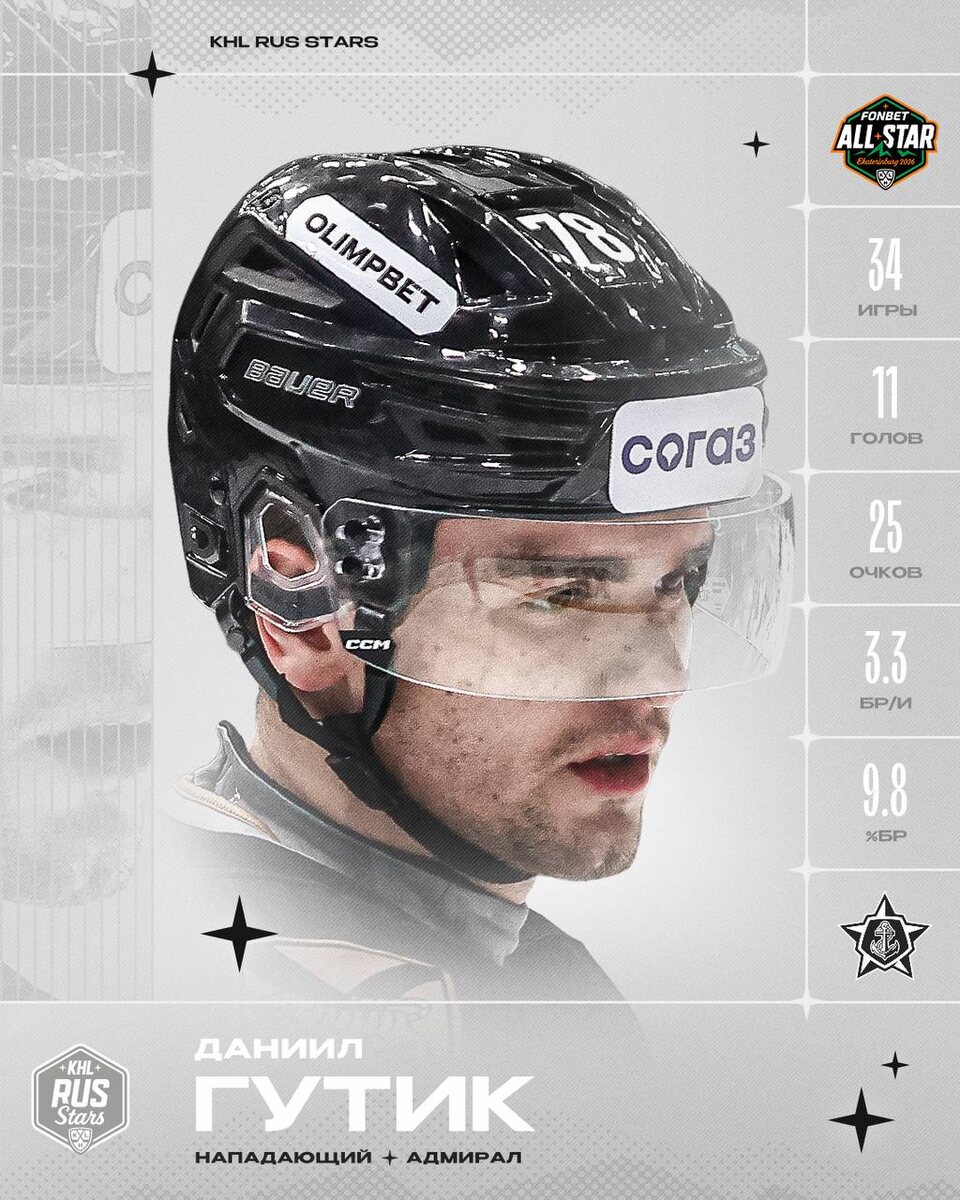 ! 7 и 8 февраля лучший бомбардир «Адмирала» отправится на третий в карьере звёздный уикэнд, который проведёт в составе команды KHL RUS Stars. ⭐️ Билеты на #KHLAllStar