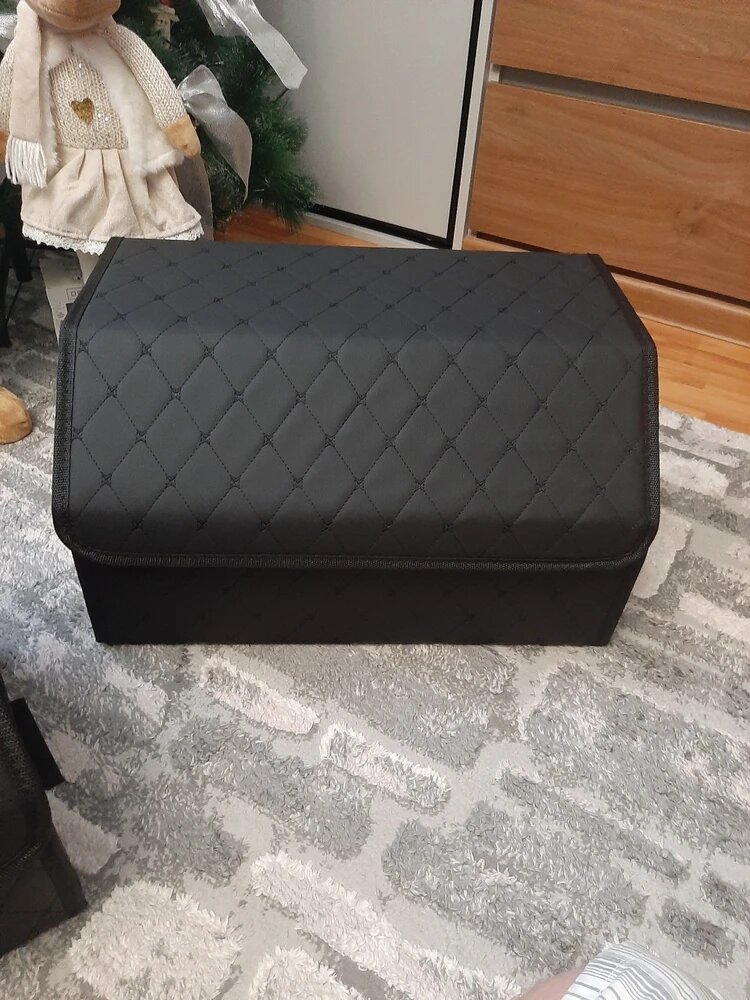 Стильный и функциональный органайзер из экокожи для поддержания идеального порядка в багажнике автомобиля. Имеет большой объем и разделён на несколько удобных отделений. Оснащён практичной ручкой для переноски и надёжными креплениями.