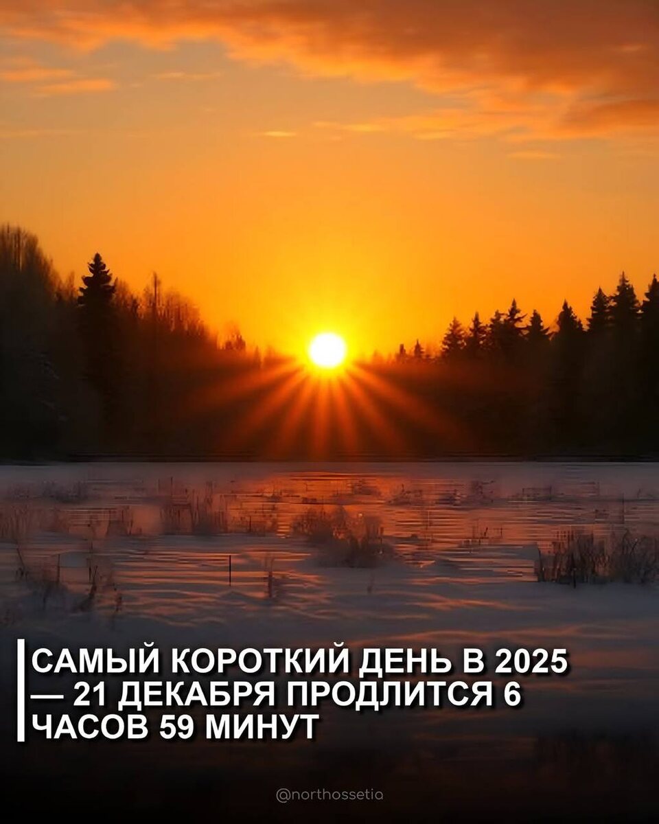 Самый короткий день в 2025 — 21 декабря продлится 6 часов 59 минут