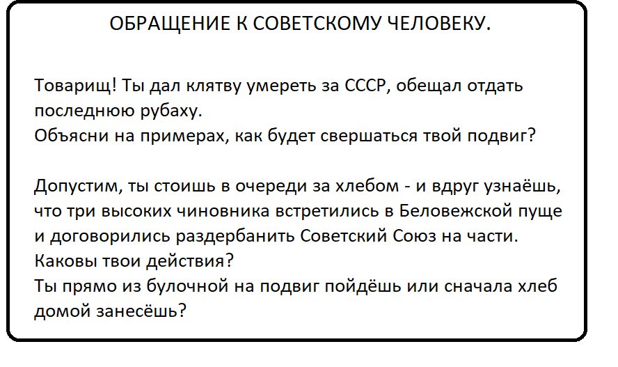 Сегодня мы чувствуем, что не нужны нам больше ни миллионы граждан из братских республик, ни миллиарды пядей советской земли. Зачем за них умирать?