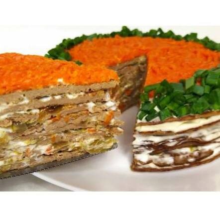 Закусочный торт из печени — это всегда эффектно, сытно и очень вкусно. Он прекрасно подойдет и для праздничного стола, и для семейного ужина.