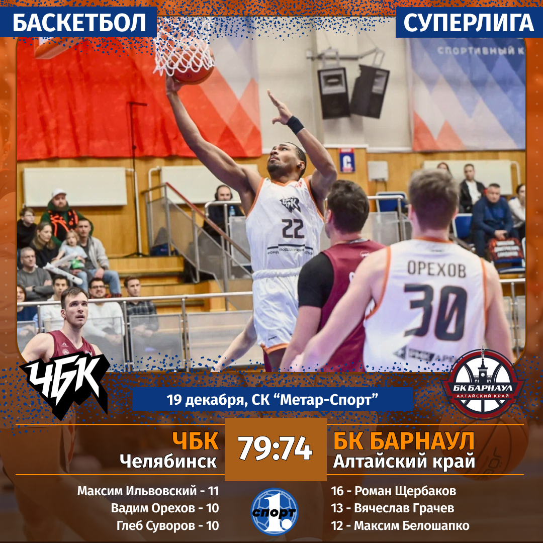 Очередную победу на домашнем паркете в Суперлиге одержал клуб «ЧБК». Челябинская команда не без проблем справилась с соперниками из Барнаула — 79:74. Это уже девятая победа подряд подопечных Горана Вучковича в Челябинске, южноуральцы не знают поражений на домашнем паркете и уверенно лидируют в чемпионате, сообщает корреспондент ИА «Первое областное». Итоговый перевес в 5 очков над соперниками из Алтайского края не должен вводить в заблуждение. Челябинцы уверенно контролировали ход матча, вели по его ходу в 15—17 очков. Уже стартовый период «ЧБК» выиграл со счетом 30:15, сохранил он это преимущество и после второй четверти. При счете 46:31 команды отправились на большой перерыв. И даже в третьем отрезке матча хозяева площадки не давали соперникам и шанса на спасение. Зато в четвертом периоде барнаульцы наконец-таки заиграли в полную мощь и едва не совершили камбэк. За 5 минут до финальной сирены они сократили разрыв в счете до 4 очков (67:71). К счастью, баскетболисты «ЧБК» вовремя подк
