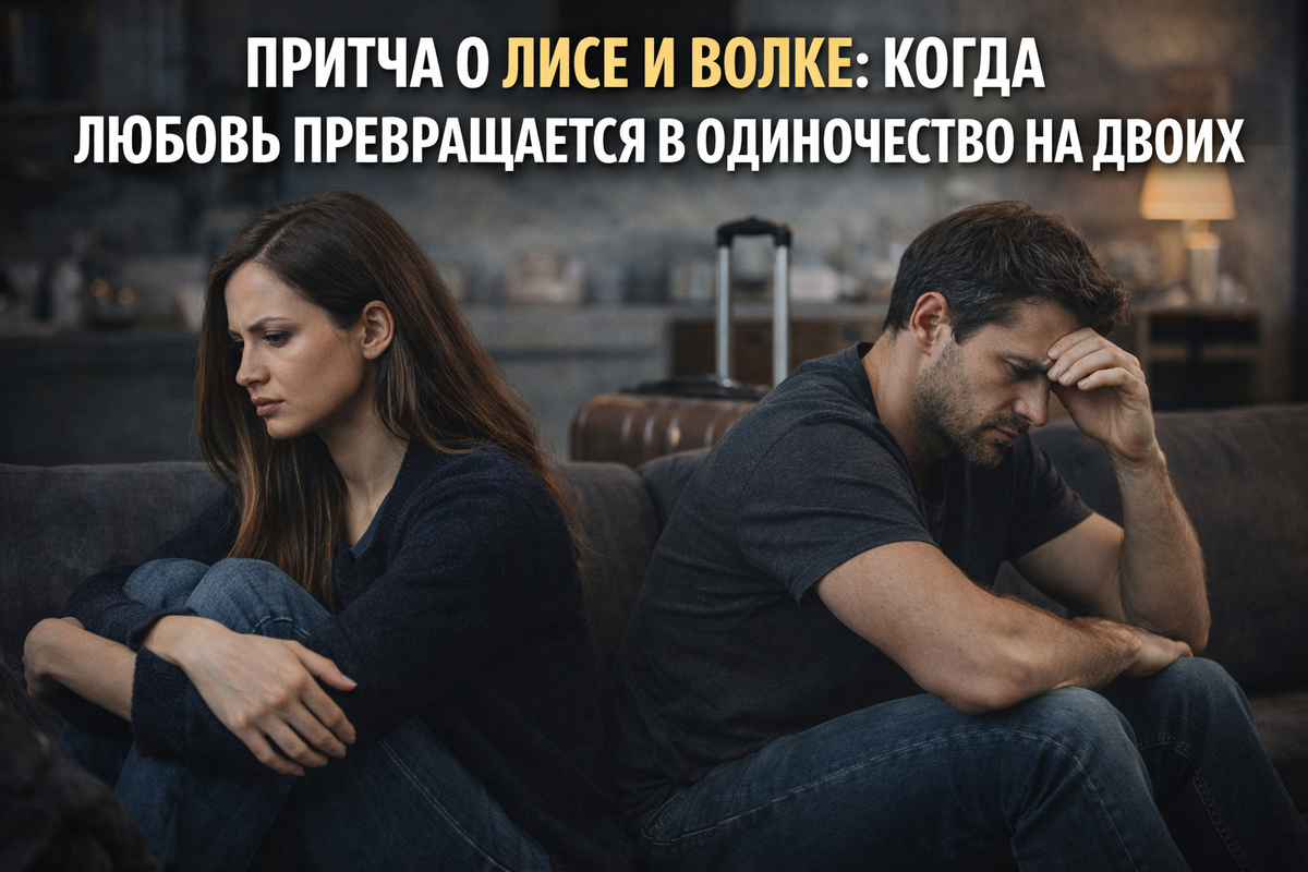 Но на самом деле — уже ничего нет. Только два знакомых силуэта под одной крышей, каждый в своём мире. Это история не только про Лису и Волка. Это история тысяч пар, где кризис подкрался незаметно, а один из двоих давно уже стоит у порога с чемоданом, пока другой всё ещё верит: «мы вместе». Жили-были Лиса и Волк.