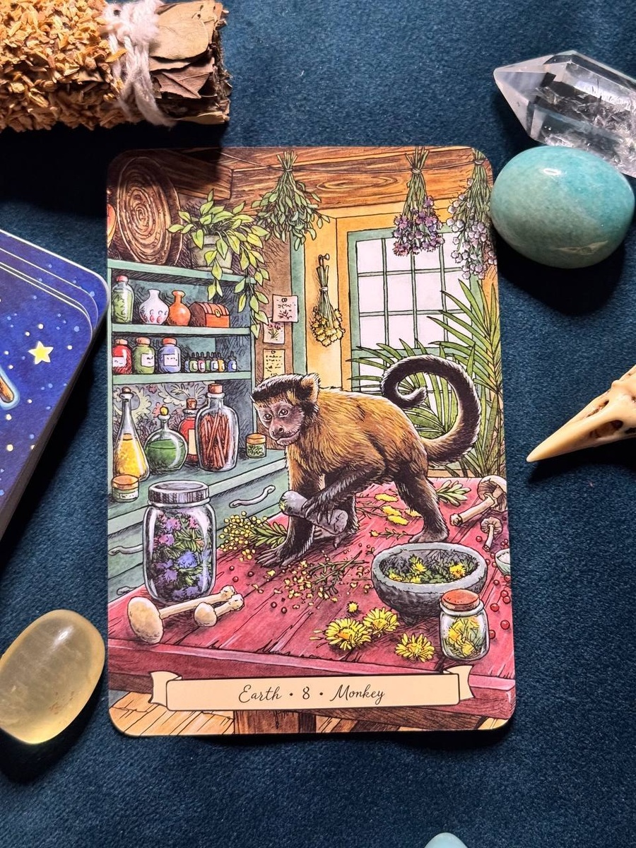 Тема: игра, хитрость и ведьмовское «а зачем вообще всё усложнять?» Обезьяна — шаман хаоса и креативный саботажник рутины. Она приходит тогда, когда ты слишком серьёзно относишься к жизни, людям и даже своим ритуалам. Пора встряхнуться. На этой неделе тебе позволено нарушать правила, импровизировать и делать магию “на коленке”, с подручными средствами и хихиканьем. Смех — твой амулет. Если дела застопорились, попробуй нестандартно: вместо манифеста — танец, вместо медитации — мем, вместо контроля — доверие. Обезьяна напоминает: иногда Вселенная двигается только тогда, когда ты перестаёшь контролировать каждую запятую. 🍌 Магический совет: Добавь элемент игры во всё, что делаешь. Укрась алтарь смешной безделушкой, включи глупую песню, поменяй рутину. Ведьма, умеющая смеяться над собой, — неуязвима. 💬 Ведьмин вывод: Если магия не вызывает улыбку — это не магия, а корпоратив.
