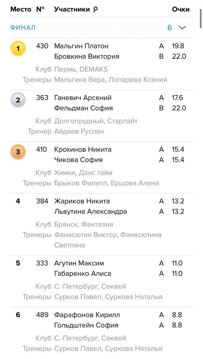 Результаты ВС Юниоры 2 Латиноамериканская программа 🏆