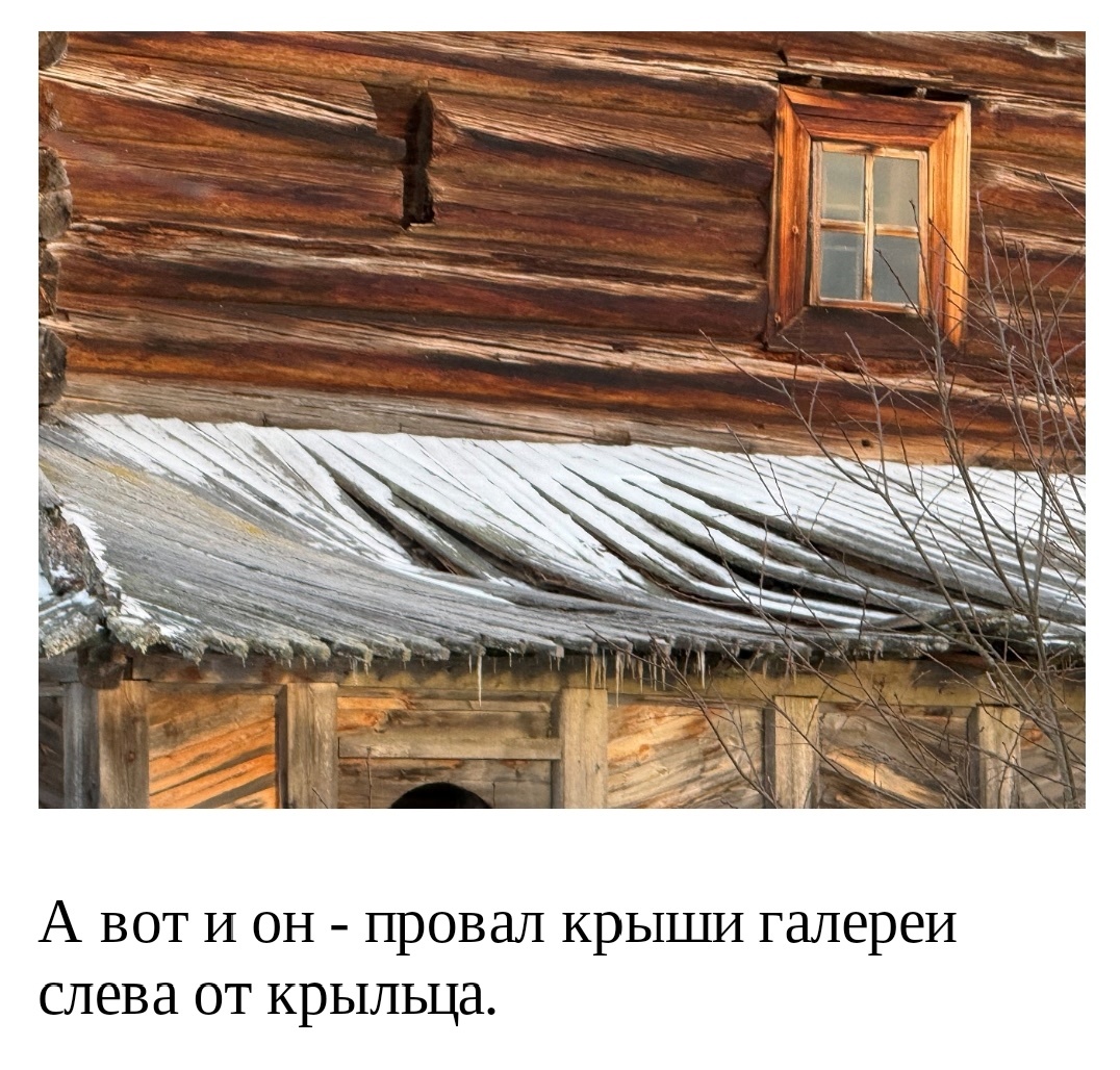 «Чем это чревато? Причинением невосполнимого вреда и ущерба предмету охраны уникального памятника! В течение всей зимы снег будет собираться в провал крыши внутрь галереи у самых сохранных бревен сруба 17 века, которые за всю историю своего существования всегда находились в помещении галереи. Именно в этой стене расположен центральный вход в храм – подлинная мощная дверная колода с дверными полотнами, кованными жиковинами, подставами и врезным замком, сохранившимися со времени постройки храма! Весь этот снег будет постепенно заваливать галерею, скапливаться, оттаивать и замерзать, превращаясь в глыбу слежавшегося снега и льда. Крыша ската, скорее всего, к весне провалится вся, стены галереи, потеряв устойчивость, соответственно, упадут», – предполагают общественники.